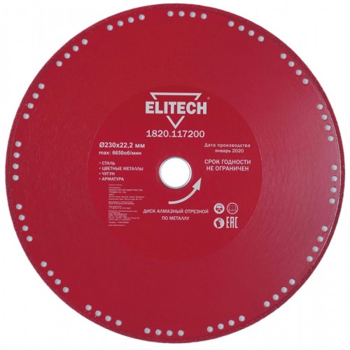 Elitech Диск алмазный 230х22.2 сталь 1820.117200