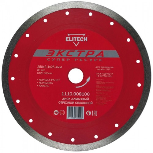 Elitech Диск алмазный 250х25,4 плитка 1110.008100