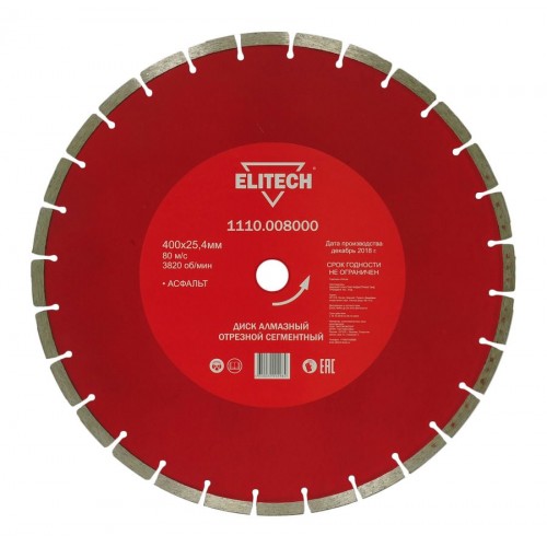 • Elitech Диск алмазный 400х25,4 асфальт 1110.008000