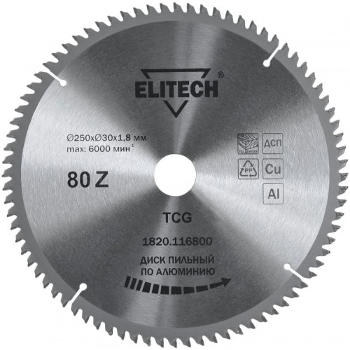 • Elitech Диск пильный 250х30 80зуб алюминий 1820.116800
