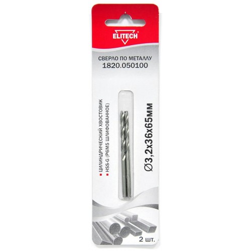 • Elitech Сверло 3.2х65 HSS-G 2шт 1820.050100