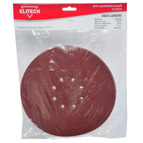 • Elitech Круг шлифовальный 225мм Р100 5шт 1820.126200