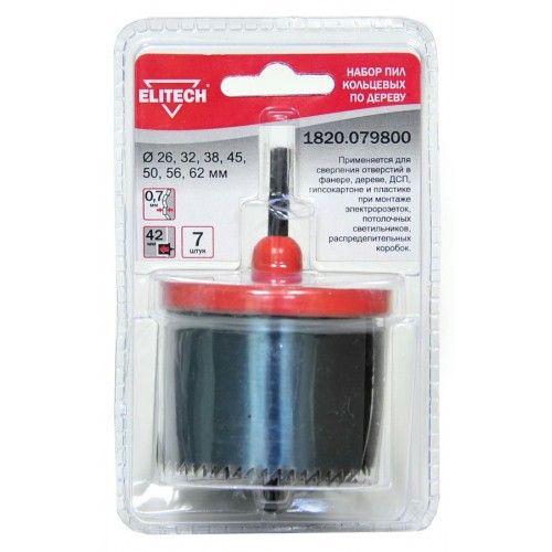 Набор пил кольцевых по дереву ф25\32\38\45\50\56\62мм, глубина 42мм