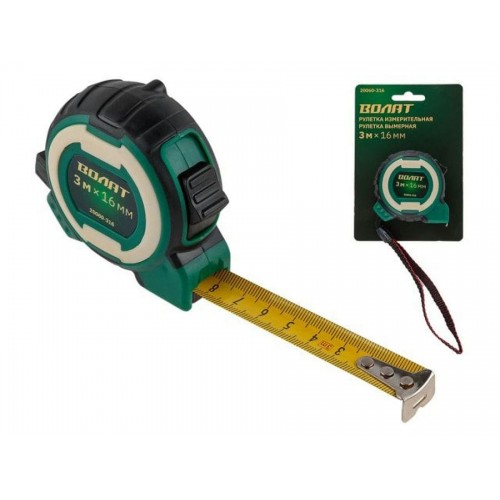 Рулетка 3м/16мм двухкомпон. корп. ВОЛАТ (быт.) (1 мех. фиксации, ABS+TPR, УФ кольцо на корпусе рулетки)