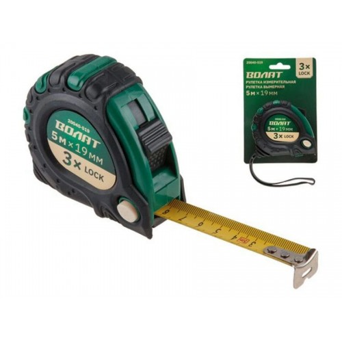 Рулетка 5м/19мм обрезин. корп. ВОЛАТ (быт.) (3 мех. фиксации, ABS+TPR)