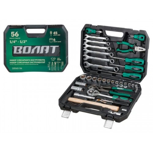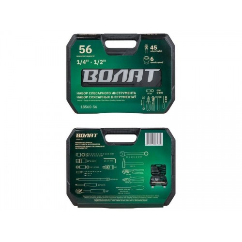 Набор слесарного инстр-та в чем. 56пр. ВОЛАТ (1/4", 1/2", 6 граней)