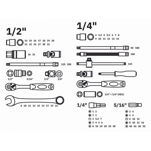+ Ключ комбинированный: 8, 10, 11, 12, 13, 14, 17, 19, 22 мм;