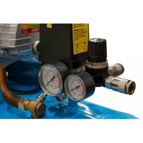 ■ 2-цилиндровый ■ Регулятор давления ■ Клапан облегчения запуска компрессора ■ 2 быстросъемных выхода ■ Воздушный фильтр с поролоновым фильтроэлементом ■ Контрольный глазок для проверки уровня масла