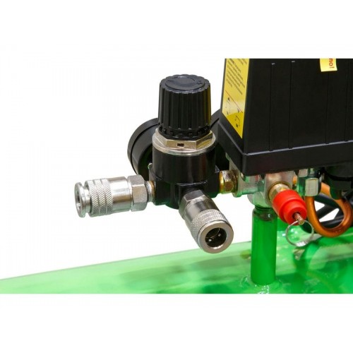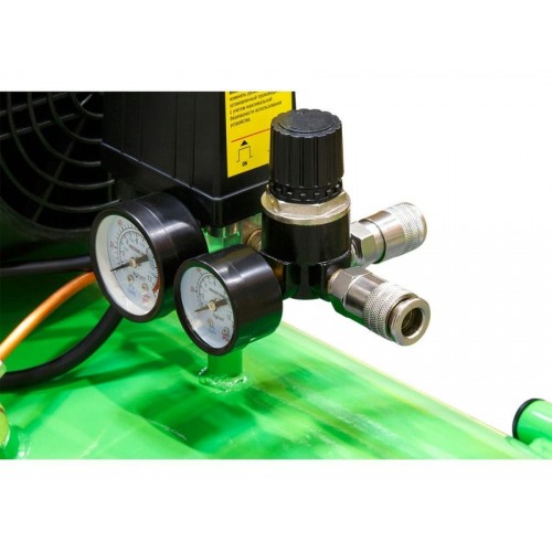 ■ Простая и надежная конструкция компрессора позволяет широко использовать его в бытовых целях ■ Увеличенный масляный картер, для лучшей смазки и отвода тепла от поршневой группы ■ Конденсатор увеличенной емкости для работы на пониженном напряжении ■ Тепловая защита двигателя ■ Латунный обратный клапан ■ Регулировка давления на выходе ■ Два манометра ■ Два быстросъема с латунным клапаном.Поршневой масляный компрессор с прямым приводом. Компрессор поставляется с компрессорным маслом необходимого объема для стартового запуска компрессора. Масло может быть заправлено в картер компрессорной головы компрессора, либо перелито в отдельную герметичную емкость для целей транспортировки во избежание утечки из картера в зависимости от условий транспортировки изделия. Внимание! В картере могут находиться остатки масла. Это связано с тем, что 100% устройств запускается на производстве после сборки для проверки на работоспособность.