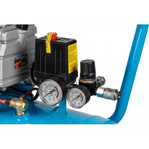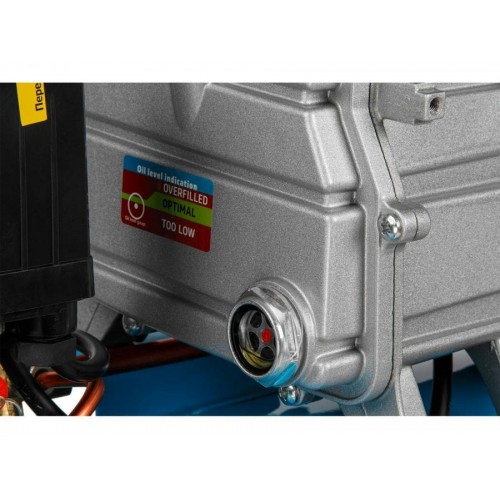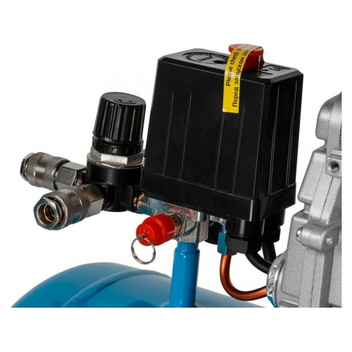 ■ Тепловая защита электродвигателя ■ 2 быстросъемных выхода ■ Манометр давления в ресивере ■ Манометр давления на выходе ■ Регулятор давления ■ Контрольный глазок для проверки уровня масла ■ Воздушный фильтр с поролоновым фильтроэлементом ■ Ручка для транспортировки