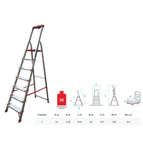 Лестница-стремянка алюм. проф. 150 см 7 ступ. 7,2кг NV3118 Новая Высота (с лотком-органайзером, макс. нагрузка 225кг)