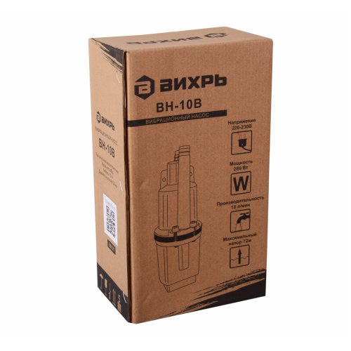 Вибрационный насос Вихрь ВН-10В 68/8/1 прост в использовании. Агрегат применяется для перекачивания воды из резервуаров и колодцев диаметром более 110 мм. Электрический двигатель мощностью 280 Вт дает напор до 72 метров и производительность до 18 л/мин. Разборные части крепко стянуты болтами. Насос требователен к качеству воды: вода должна быть чистая, без примесей и песка. Минимальное расстояние от дна колодца до насоса: 1 м. Максимальная глубина погружения составляет 3 метра.