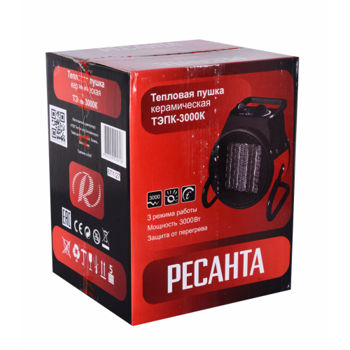 Тепловая электрическая пушка РЕСАНТА ТЭПК-3000K предназначена для вентиляции и обогрева жилых и производственных помещений, складов, гаражей, а также для обогрева и сушки в строительстве.