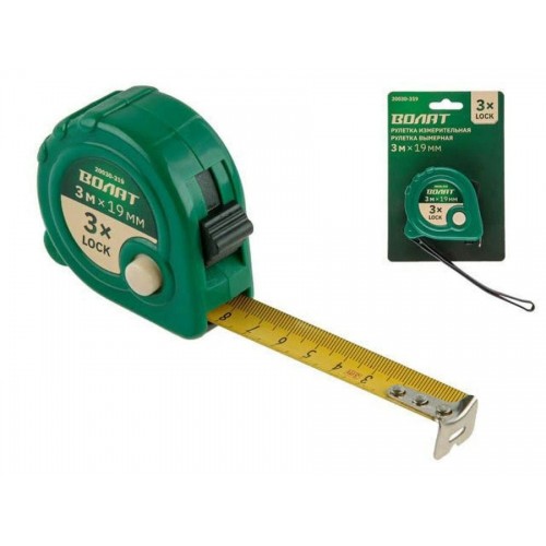 Рулетка 3м/19мм пласт. корп. ВОЛАТ (быт.) (3 мех. фиксации, ABS)
