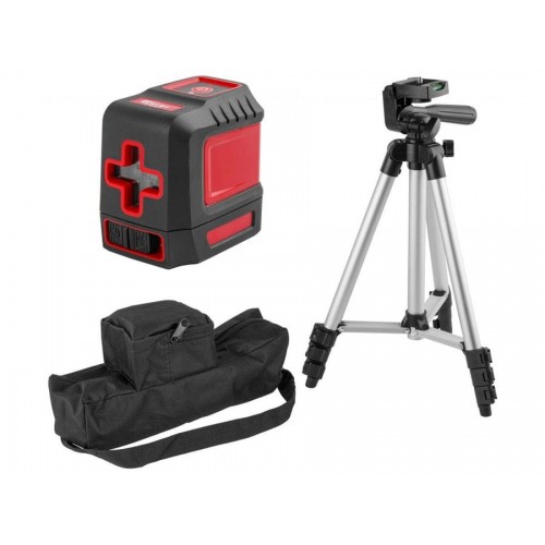 Нивелир лазерный WORTEX LL 0210-1 со штативом в кор. 2х130°, до 15 м, +/- 0.3 мм/м, красный (резьба 1/4", штатив 1 м в комплекте)