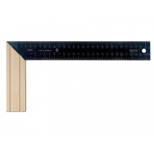 ■ прочная конструкция ■ -скошенная рукоятка для удобного удержания ■ -воронение полотна позволяет избегать бликов и облегчает работу при солнечном свете ■ -шкала на передней и задней поверхностях полотна ■Полоно: вороненая пружинная сталь -Рукоятка: анодированный алюминий -Двухсторонняя шкала в ммсм (травленая) -45 град. Целевая группа: столяры, плотники, рабочие по металлу