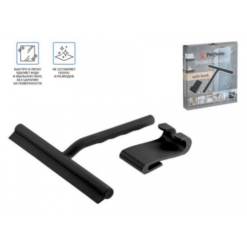 Стеклоочиститель (водосгон) с держателем, черный, PERFECTO LINEA (Идеально для ванной комнаты.)