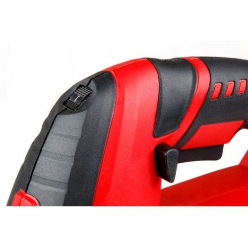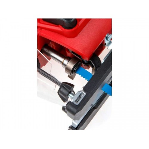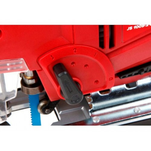 Лобзик оснащен удобной, эргономичной прорезиненной рукояткой, для быстрой замены пильных полотен предусмотрен быстрозажимной патрон, наличие маятникового движения с направляющим роликом, позволяет производить быстрые и при этом ровные пропилы. Литая алюминиевая подошва регулируется под разными углами. Есть защитная пластиковая накладка для подошвы. Возможно подключение пылесоса. Регулировка скорости позволяет использовать лобзик для реза различных материалов. Есть лазерный указатель и подсветка. Есть сдув опилок. Гарантийный срок - 2 года.