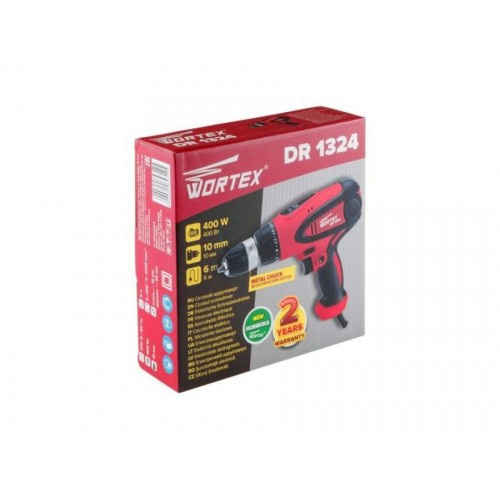 Дрель-шуруповерт WORTEX DR 1324 в кор. (400 Вт, металл. патрон БЗП, 35Нм, 2 скор, шурупы до 9 мм, кабель 6 м)