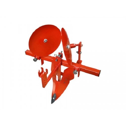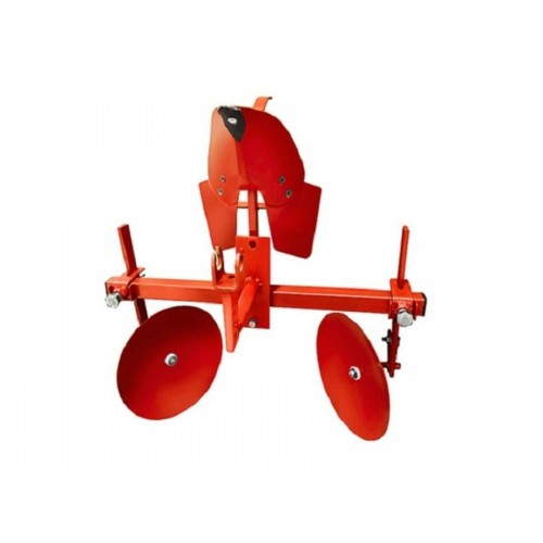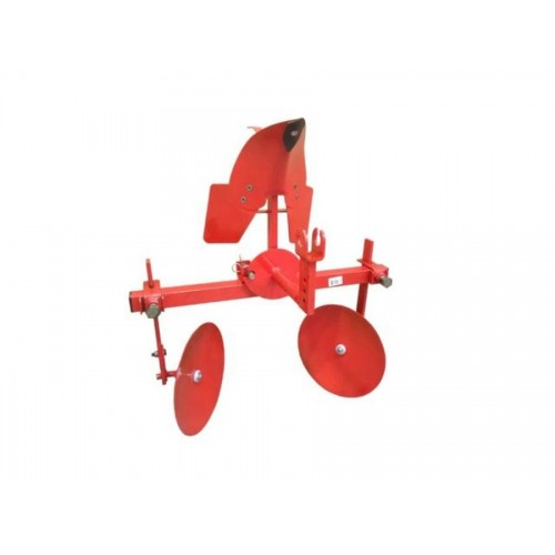Окучник дисковый оборотный с бороздоделом предназначен для нарезания борозд под посадку растений, засыпки борозд слоем почвы после укладки семян и окучивания почвы (рыхления почвы в междурядьях с одновременным проваливанием ее из междурядий к нижним частям растений). Окучник дисковый оборотный представляет собой конструкцию, состоящую из неразборного корпуса (труба с приваренными втулкой, корпусом бороздодела и корпусом фиксатора), стоек окучников, дисков, скоб, сцепа, фиксатора. Крепление оси сцепа во втулке корпуса обеспечивает поворот корпуса вокруг оси сцепа с фиксацией в двух положениях: для работы окучником-бороздоделом и работы окучником дисковым. Фиксация в рабочих положениях осуществляется подпружиненным стержневым фиксатором на корпусе и диском с пазами на оси сцепа. Отверстия в секторах валов дискового окучника служат для регулировки углов наклона дисков в поперечно-вертикальной плоскости. Диски окучников вращаются на валах. Во втулках дисков установлены подшипники скольжения. Стойки окучников с установленными валами и дисками крепятся к трубе корпуса поперечной скобами. Конструкция скоб позволяет регулировать расстояние между стойками дискового окучника и положение стоек по высоте. Ширину захвата окучника-бороздодела регулируют разводом крыльев. Перед нарезанием борозд необходимо произвести рыхление почвы мотоблоком или мотокультиватором. Диаметр диска: 290мм Наибольшая высота гребня: 200мм Угол атаки: 2635мм Ширина захвата бороздодела: 270430мм Глубина обработки бороздоделом: 150мм Масса: 16,3кг