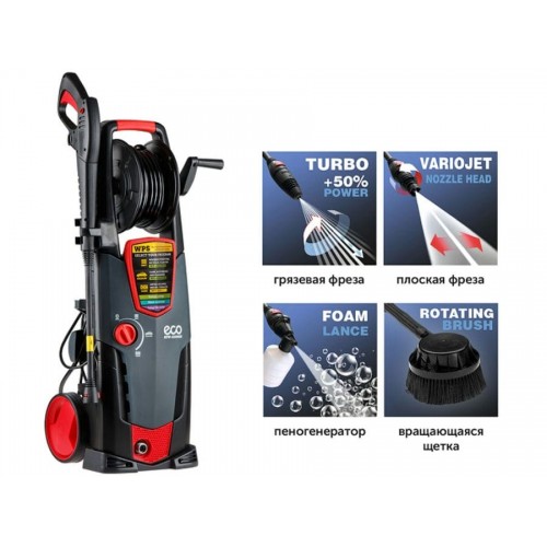 Очиститель высокого давления ECO HPW-1825RSE (2.50 кВт, 180 бар, 520 л/ч, режимы Soft / Medium / Hard; самовсасывание; барабан д/шланга с подключ.)