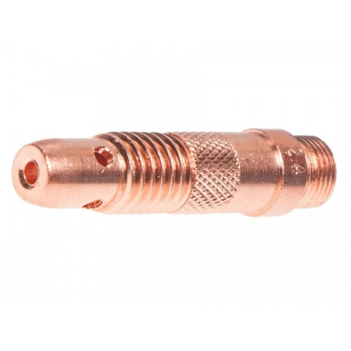 Зажим цанги является расходным элементом TIG горелки. Предназначен для фиксации электрода с цангой в TIG горелке. Отверстия на зажиме служат для распределения потока защитного газа. Упаковка: индивидуальный PA-пакет со стикером Применяется для TIG горелок: Solaris WGT-17V, WGT-26, WGT-26V; а также совместимые горелки 17, 18 и 26 серий