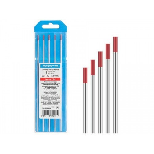 Электрод вольфрамовый красный WT-20, Ф 3,0 мм (набор 5 шт) SOLARIS