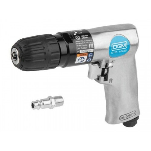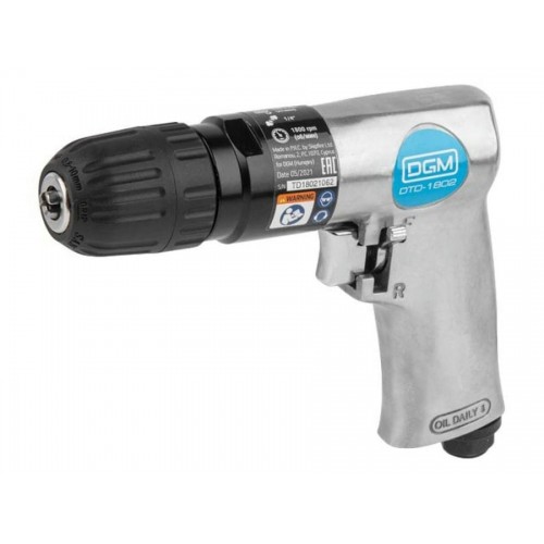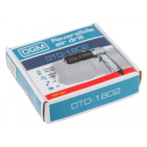Пневмодрель с реверсом DGM DTD-1802 (Быстрозажим.патрон 3/8''-24 UNF, 255 л/мин, 1800 об/мин, дерево/металл: 20/10 мм;)