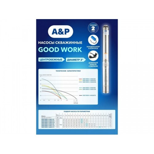 Насос погружной для чистой воды GOOD WORK 3-4800/20-7/3 A&P (550 Вт, 6600 л/ч при напоре 11 м, 38 м)